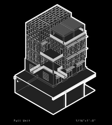 Studio VII, also known as Integration Studio, focuses on building structural and performance systems integration in relation to an architectural concept. Students will engage in a program that studies the impact of site and programmatic forces, aligning with integrative design principles as outlined by NAAB. This course builds upon and emphasizes the synthesis of knowledge and skills acquired in concurrent and prior coursework, demonstrating individual student capabilities. Throughout the semester, students will develop a mixed-use residential complex, integrating architectural aspects they have gained across their academic coursework.