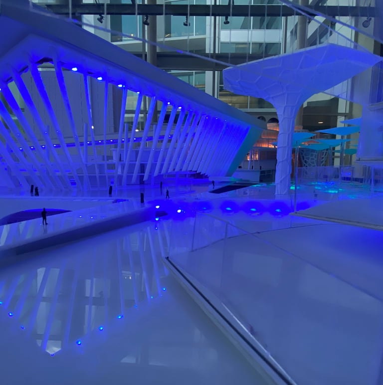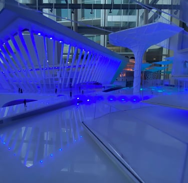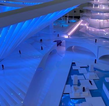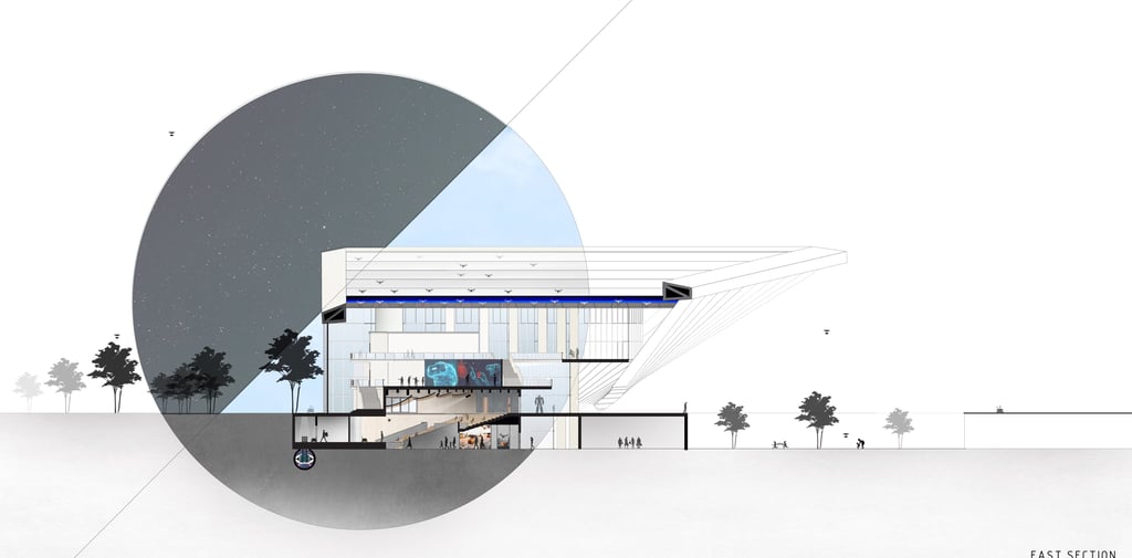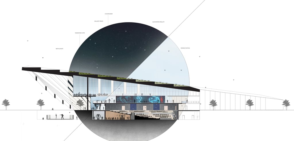 The auditorium is a marvel of modern engineering, featuring a sleek facade that reflects the district's dedication to a digital future. Upon entering, visitors are welcomed into an immersive environment that effortlessly blends aesthetics with functionality. Its sleek lines, cutting-edge lighting, and minimalist design transcend the conventional expectations of an auditorium. This High-Tech Auditorium is outfitted with state-of-the-art audio-visual technology, ensuring an engaging experience for all attendees. It boasts ultra-high-definition projection systems and immersive surround sound, with every detail finely tuned to enhance presentations, performances, and events. The integration of augmented reality and virtual reality technologies opens up new, dynamic, and interactive possibilities for both speakers and audiences, further distinguishing this space as a forefront of technological advancement.