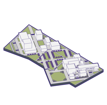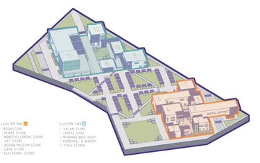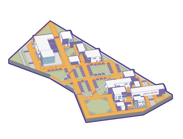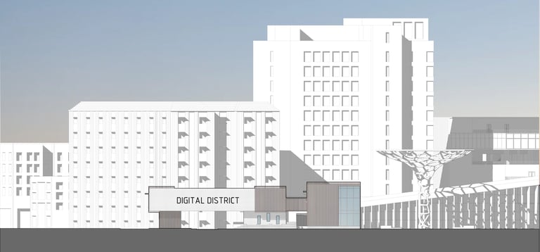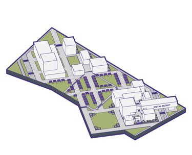 The Digital District Focus Studio is a pioneering undergraduate research initiative. Building on a foundation of expertise in systems, materials, and building performance, this studio is committed to developing an urban campus in Savannah, Georgia. Our vision involves transforming a lot in Savannah into a vibrant 'Digital District,' featuring essential components like an Auditorium, Amphitheater, Offices with Research and Development Workshops, Residential Living, and a Community Center. In partnership with Curiosity Lab, the Digital District is integrating advanced smart systems, including infrastructure, circulation, building performance, drone research, and autonomous logistics, all interconnected through 5G wireless communication. Our studio's objectives are underpinned by a comprehensive understanding of environmental technologies, integrated systems, urban design, and high-performance buildings, aiming to effectively incorporate these smart systems throughout the entire site. Additionally, the studio prioritizes community engagement, honoring Savannah's history as America's first planned city. While the Digital District acknowledges the charm of Oglethorpe's design, characterized by streets interlaced with inviting public squares and parks, our goal is to contemporarily reinterpret these foundational concepts. We strive to weave this historical legacy into the district's fabric, transforming the waterfront site into a contemporary representation of the Savannah experience.