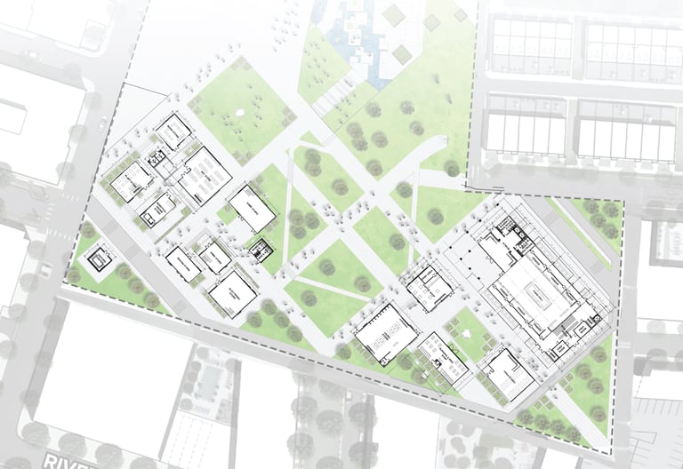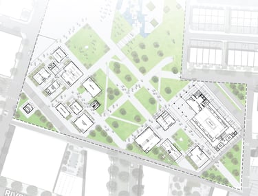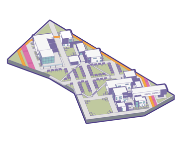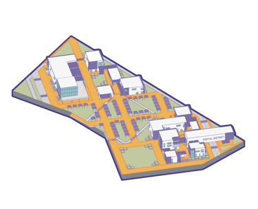 Developing the site for the Digital District posed a unique challenge. White and his Focus Studio team approached this task by proposing development within the undeveloped areas of the site. While there is already a master plan in place through Patrick Malloy Communities and other developers, the introduction of the Digital District is intended to disrupt these future plans by adding an innovative component to Savannah, Georgia.