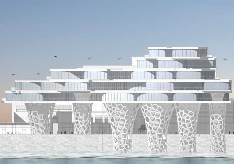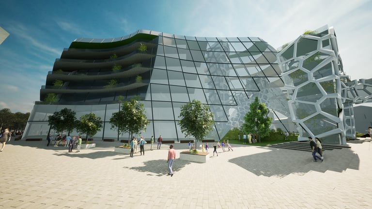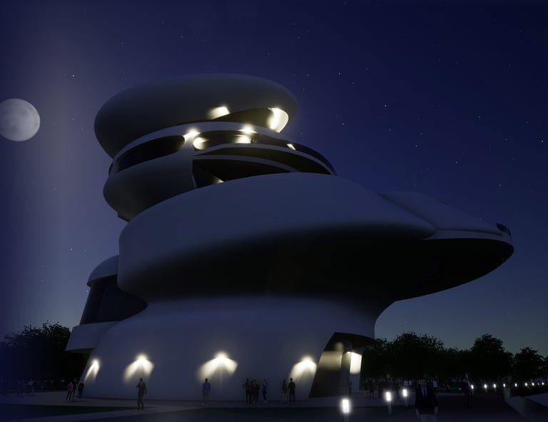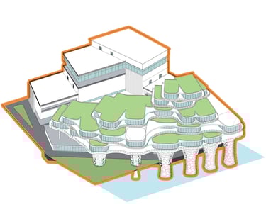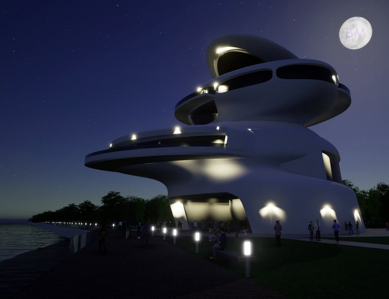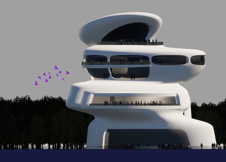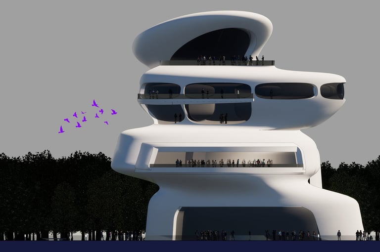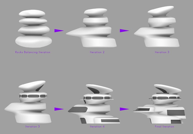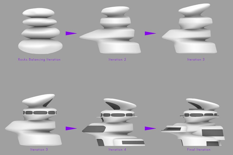 Beauty can be found ubiquitously, but the most captivating form of beauty is found in our natural environments. As architects, we are often inspired by nature’s biological principles, which we then express through the beauty of architecture. "Nature Artistic Balance" is a conceptually bio-inspired building located in the heart of Savannah, Georgia. This building draws inspiration from nature’s most common element: a rock. The distinctive feature of this design is its interpretation of rock balancing, a practice sometimes seen in national parks where visitors stack rocks from a river. "Nature Artistic Balance" mimics this practice. In its design process, the initial stages involved stacking rocks, followed by modifications to meet Savannah’s requirements for an innovative Living Laboratory.