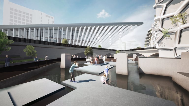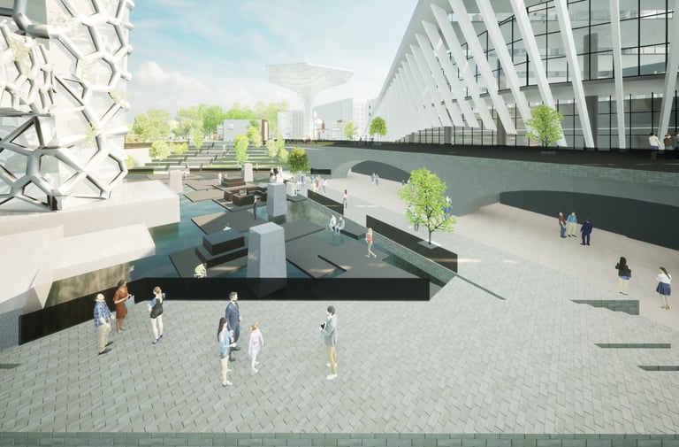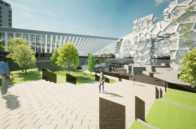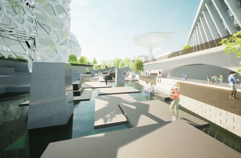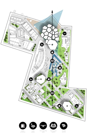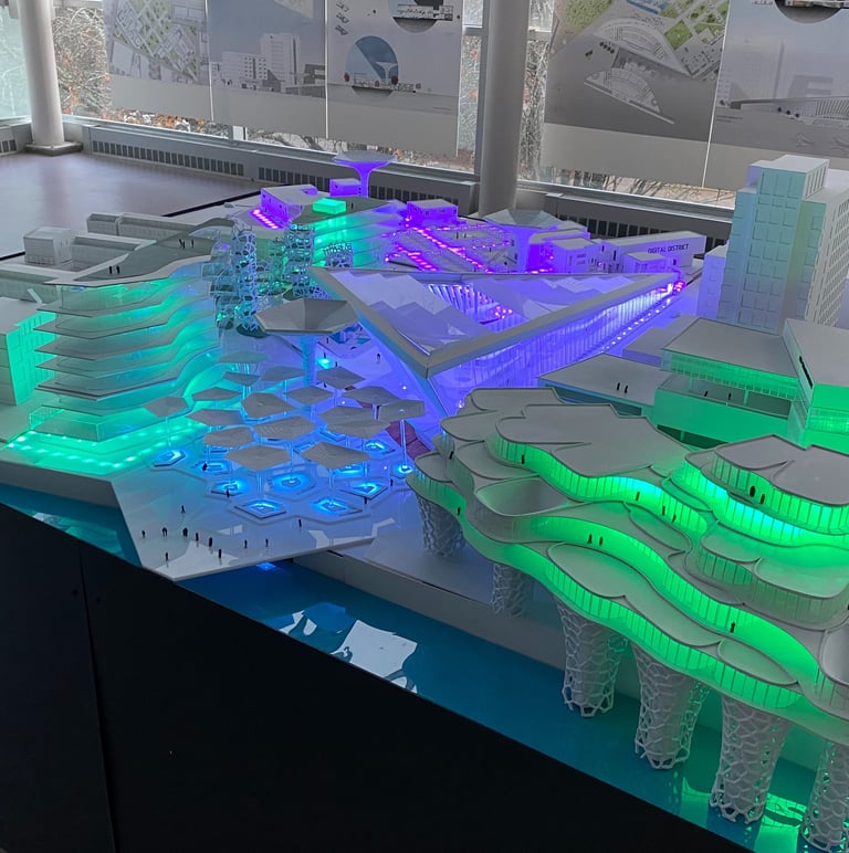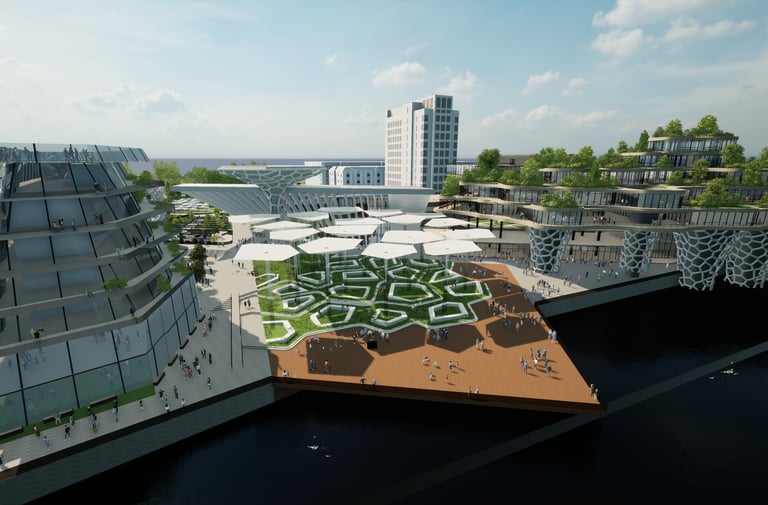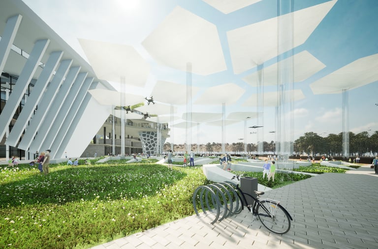 The rehabilitation of the port in Savannah, formerly dedicated to industrial production related to the sea, into a public community center for the city as a "Living Laboratory," provides an unparalleled opportunity for startups and established companies to explore, test, and validate their innovations in a real-world environment. With the convergence of intelligent mobility, smart city technology, and advanced infrastructure, this facility paves the way for a future where innovation knows no bounds. Our Innovation Center: Digital District will feature 5-6 performance buildings, including a community center, auditorium, workshops, offices, classrooms, event space, and meeting rooms for innovation and collaboration. Integrating seamlessly with the urban landscape, our Digital District infrastructure caters to the evolving needs of its inhabitants. By harnessing the power of 5G connectivity, it enables real-time communication and coordination between vehicles, pedestrians, and various public services. This collaborative ecosystem ensures enhanced situational awareness, mitigating risks and enabling efficient decision-making for a smooth and secure commuting experience.