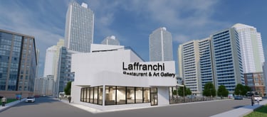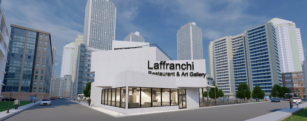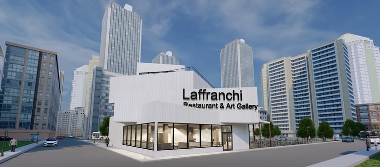 Located at 1125 Peachtree St. NE, Atlanta, Georgia, is the Laffranchi Restaurant and Art Gallery. This establishment is a four-story Italian-themed restaurant. It features a large indoor and outdoor dining area with a bar on the first floor, along with a mini bar on the terrace. The gallery spaces, situated on the second and third floors, showcase a diverse array of interesting art by local artists.
