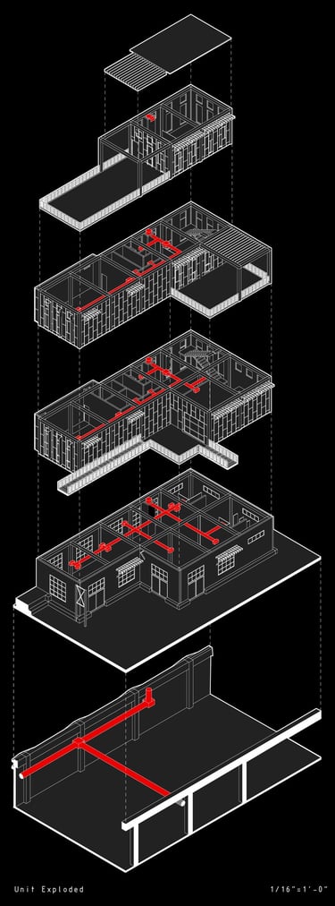 Studio VII, also known as Integration Studio, focuses on building structural and performance systems integration in relation to an architectural concept. Students will engage in a program that studies the impact of site and programmatic forces, aligning with integrative design principles as outlined by NAAB. This course builds upon and emphasizes the synthesis of knowledge and skills acquired in concurrent and prior coursework, demonstrating individual student capabilities. Throughout the semester, students will develop a mixed-use residential complex, integrating architectural aspects they have gained across their academic coursework.